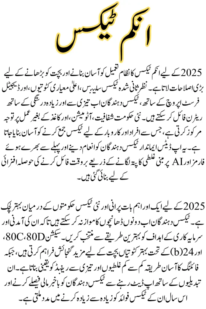 The Income Tax updates for 2025 bring major improvements that make filing faster, simpler, and more transparent. With revised slabs, higher deductions, and digital tools, taxpayers now have more control and clarity over their finances. These changes aim to encourage better tax compliance while rewarding smart financial planning.