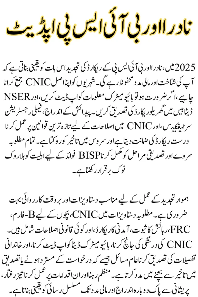 In 2025, NADRA and BISP introduced key updates to make services faster, secure, and more transparent. Citizens must follow new rules to stay eligible and keep their records accurate.