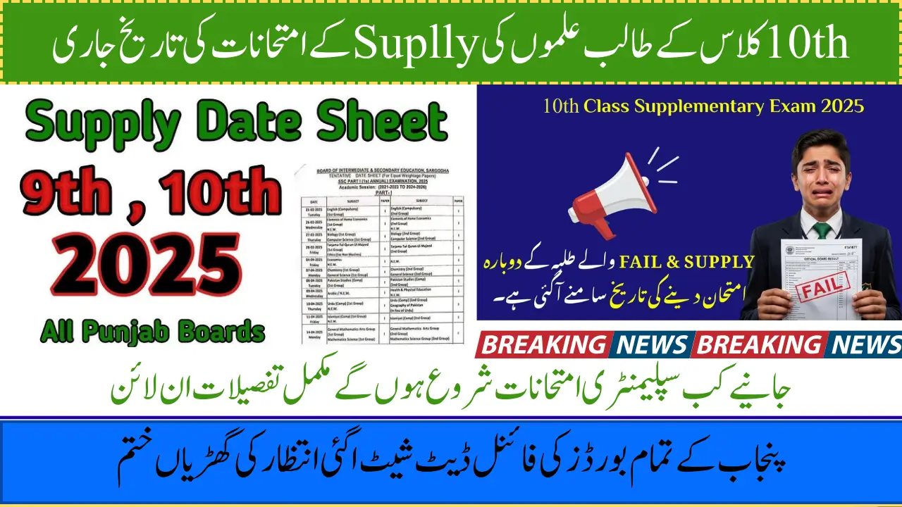 The Punjab Boards released the official supplementary exam date sheet on 17 September 2025. Students should download it from their board’s website.