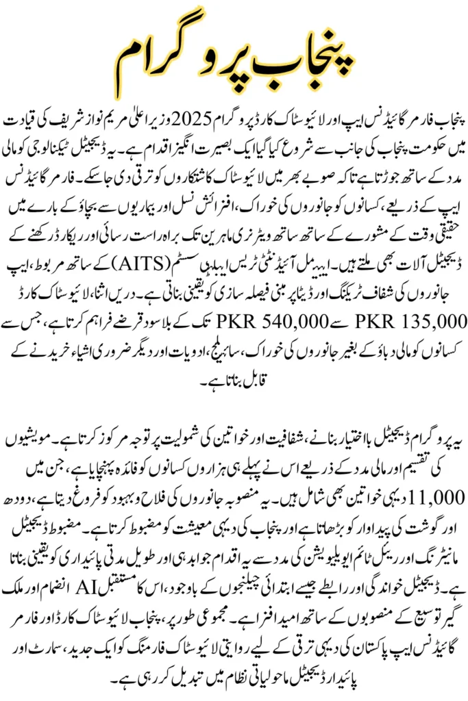 The Punjab Livestock Card and Farmer Guidance App 2025 are transforming livestock farming by combining financial access with digital innovation. The program helps farmers improve productivity, reduce costs, and ensure better animal care through real-time support and interest-free financing.